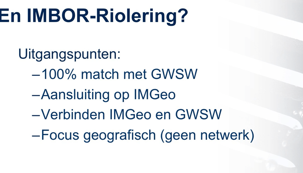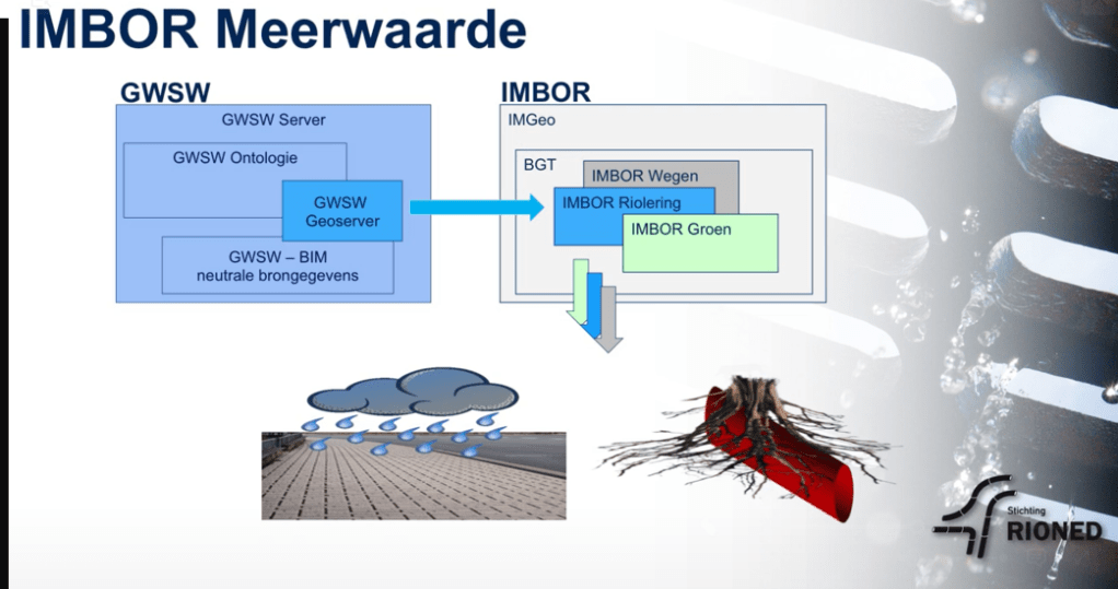 IMBOR: CROW ontwikkelt en beheert het Informatiemodel Beheer Openbare Ruimte, voor registratie van objectinformatie als schakel tussen de BGT / IMGeo en het beheer van de openbare ruimte. IMBOR-Riolering is geheel gebaseerd het GWSW. Bekijk de video over nut en scope van IMBOR Riolering in relatie tot het GWSW. Achtergrondinformatie over IMBOR bij CROW.