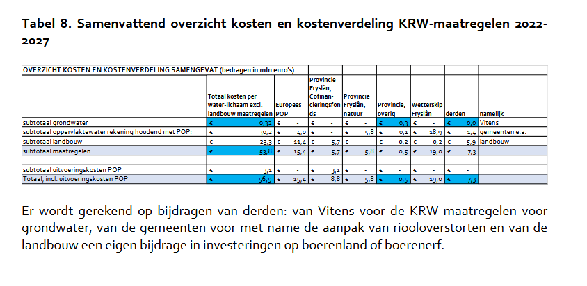 - Overzicht kosten en kostenverdeling KRW-maatregelen 2022-2027