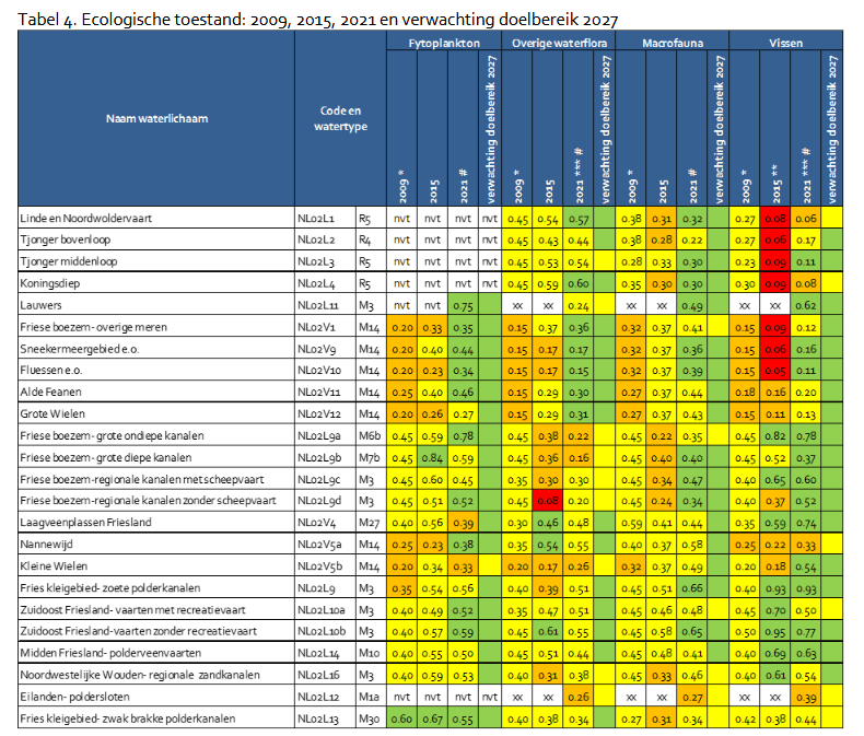 - Overzicht opgaven KRW-oppervlaktewaterlichamen